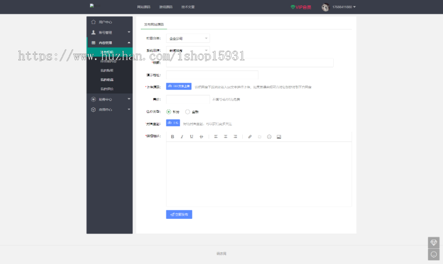 1.会员中心发布源码审核,VIP开通优惠,每日签到领积分