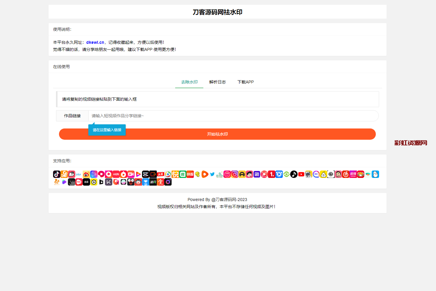 全新抖音快手小红书去水印系统网站源码 | 支持几十种平台 声明:本站所有文章,如无特殊说明或标注,均为本站原创发布。任何个人或组织,在未征得本站同意时,禁止复制、盗用、采集、发布本站内容到任何网站、书籍等各类媒体平台。如若本站内容侵犯了原著者的合法权益,可联系我们进行处理。