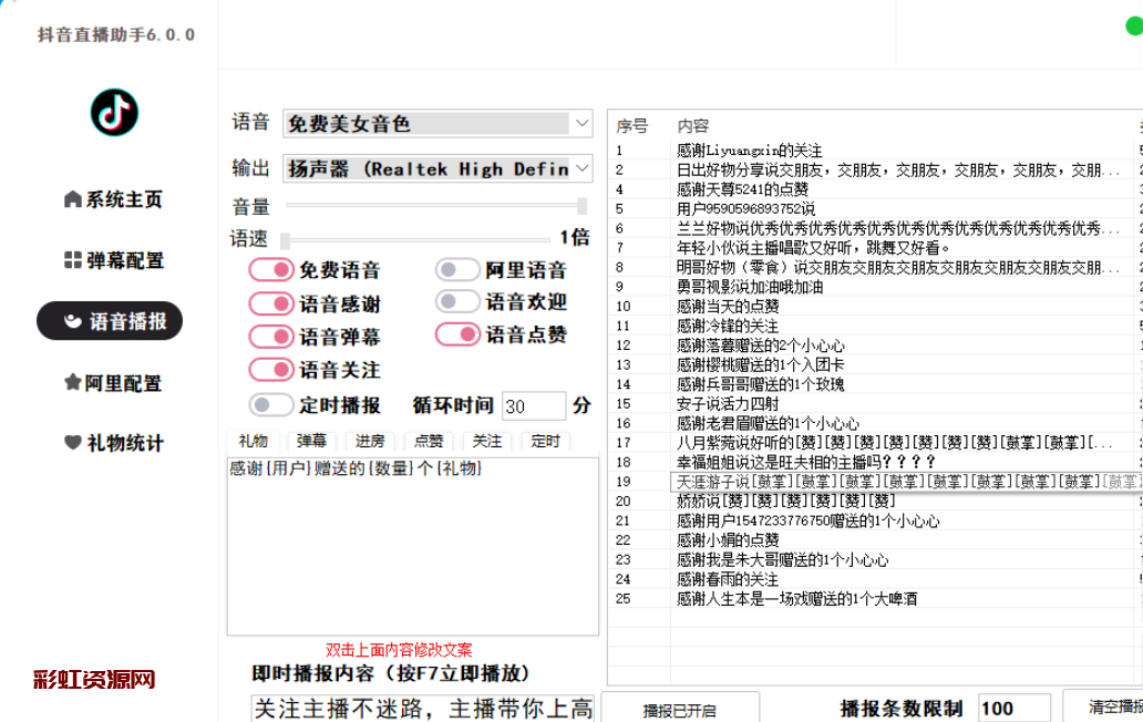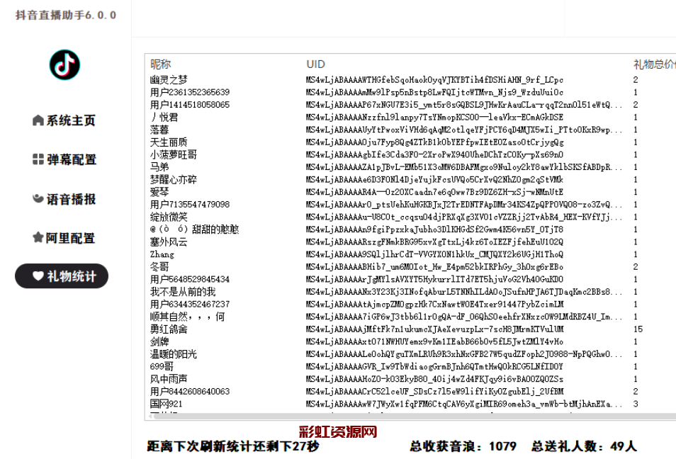 抖音直播间弹幕获取 语音播报 礼物统计等功能 采用WSS拦截解析弹幕稳定得一B。 声明:本站所有文章,如无特殊说明或标注,均为本站原创发布。任何个人或组织,在未征得本站同意时,禁止复制、盗用、采集、发布本站内容到任何网站、书籍等各类媒体平台。如若本站内容侵犯了原著者的合法权益,可联系我们进行处理。