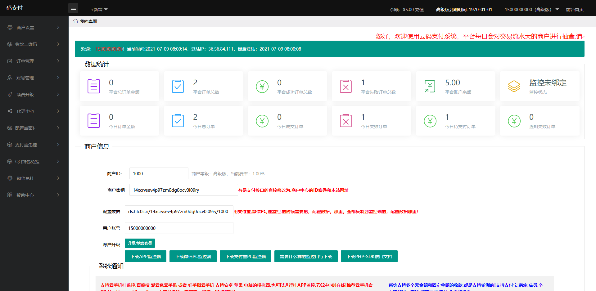 三网免挂轮询 无限添加账号 收款一次更换一个号 无限轮询